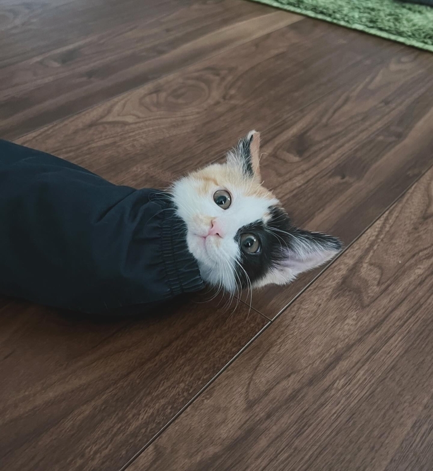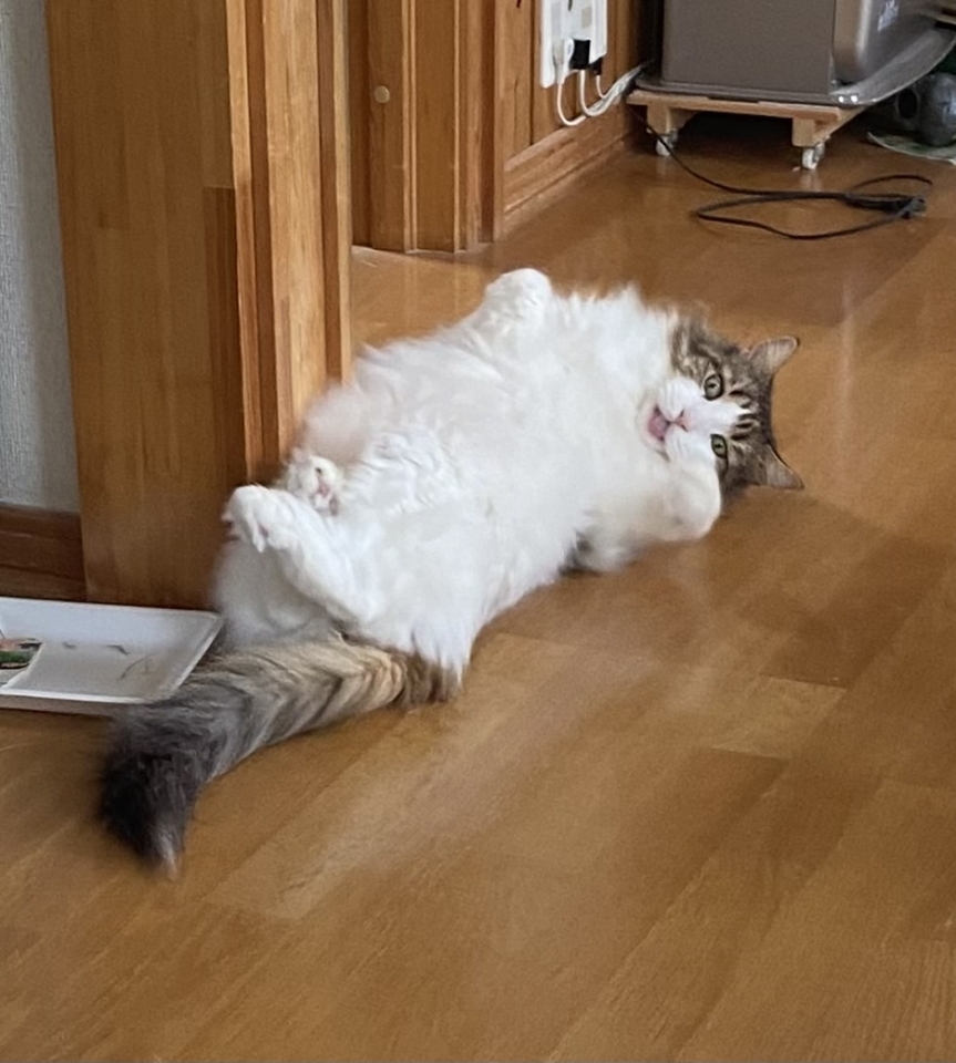 仰向けになってたので写真を撮ったらタイミング良くベロ出しが撮れました!