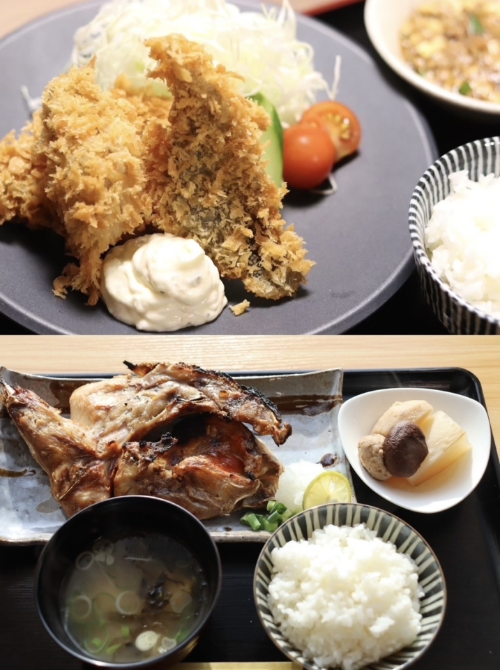 ランチでは、焼き魚やフライ、お刺身の定食が楽しめます。